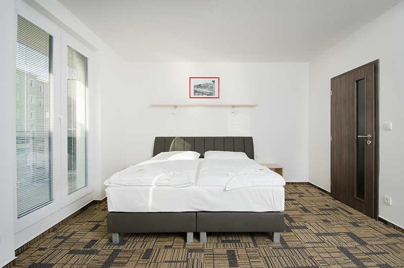 Zur Unterkunft dienen Doppelbett-Apartments mit Schlafzimmer oder Vierbett-Apartments mit Schlafzimmer und Wohnzimmer. Die obere Hotelterrasse der Maisonette-Apartments De Luxe für 4 bis 5 Personen mit einem oder zwei Schlafzimmern und einem Wohnzimmer bietet einen schönen Blick auf Brno.