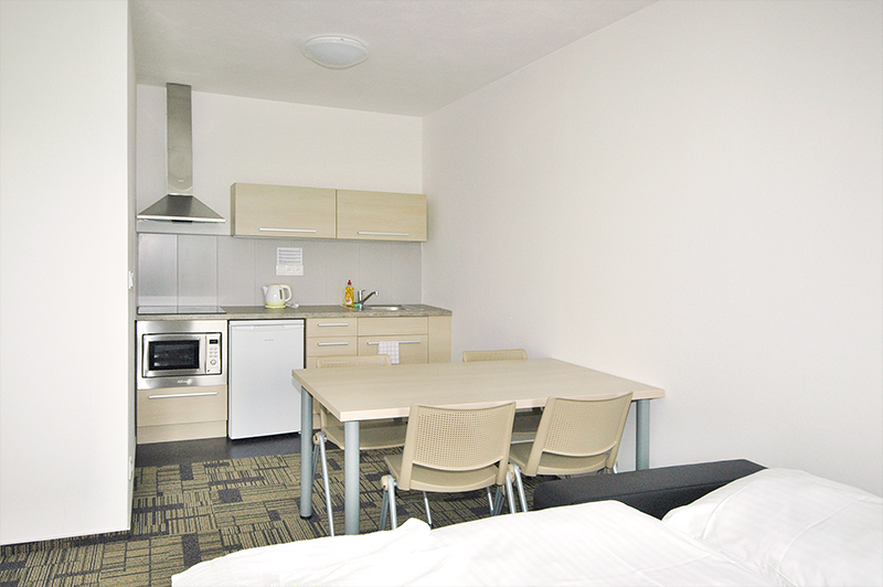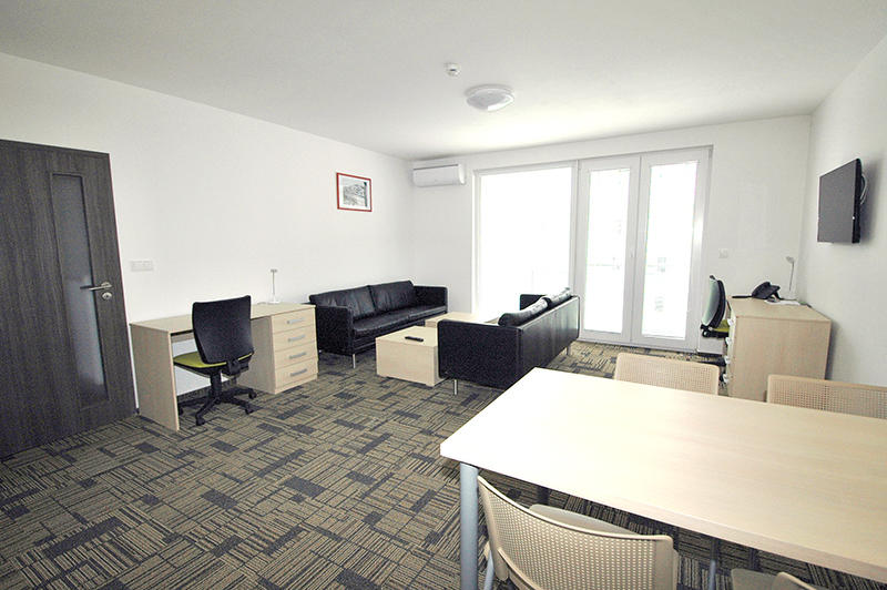 eFi Hotel Brno bietet Unterkunft für bis zu 167 Gäste in 63 Apartments. Zwei Apartments sind für Menschen mit eingeschränkter Mobilität angepasst.
